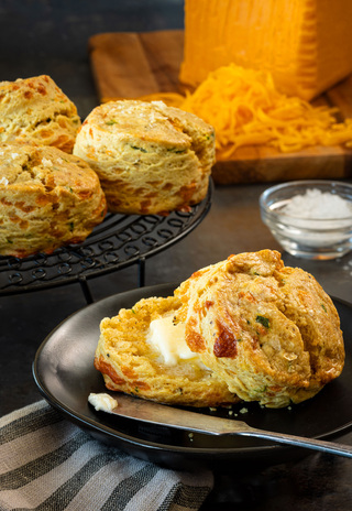 8. Line a large baking sheet with nonstick baking mat or parchment paper. Place biscuit rounds on pan. Leave at least 1 inch of space between each biscuit. Bake for 10–15 minutes, until biscuits are lightly browned. Serve immediately.