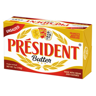 Président Butter, the #1 butter in France, is a distinctly rich, creamy, and savory European-style butter rooted in 80 years of French tradition. It’s carefully crafted from rBST-free* cultured cream (crème fraîche) made from grass-fed cows. Then, aromatic cultures are added after churning, enhancing the cream’s natural full flavor, bringing gourmet quality to every bite. Its excellent plasticity and high smoke point make it the ideal choice for baking, frying, or sautéing. Available in salted or unsalted bars or our convenient tub.